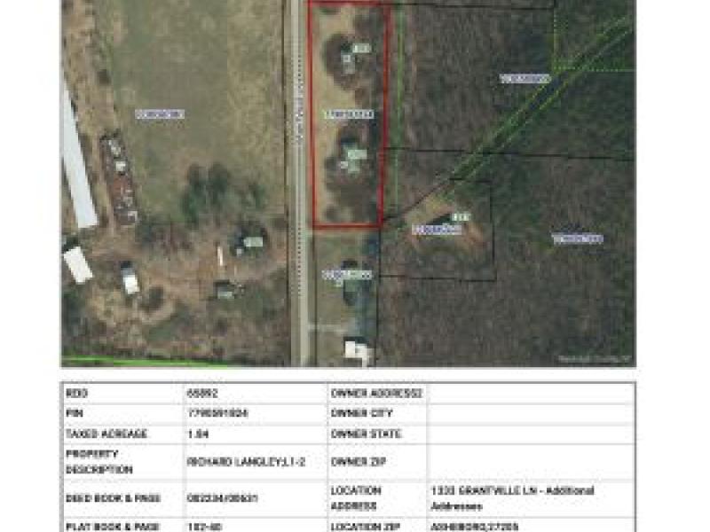 1305 Grantville Lane, Asheboro, NC 27205; unimproved real property with parcel number 7790591824. Property conveyed to Kimesha Spinks on May 25, 2011 and recorded on the same date in Book 2234, Pages 631-632 at the Register of Deeds of Randolph County.